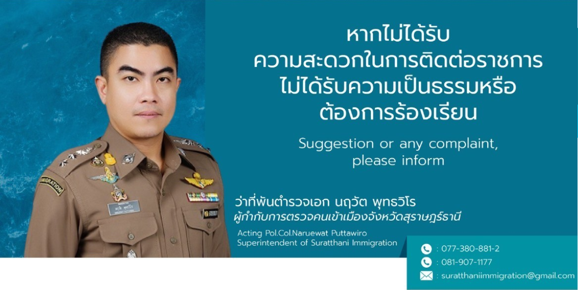 ช่องทางการถาม-ตอบ/รับฟังความคิดเห็นของตรวจคนเข้าเมืองจังหวัดสุราษฎร์ธานี