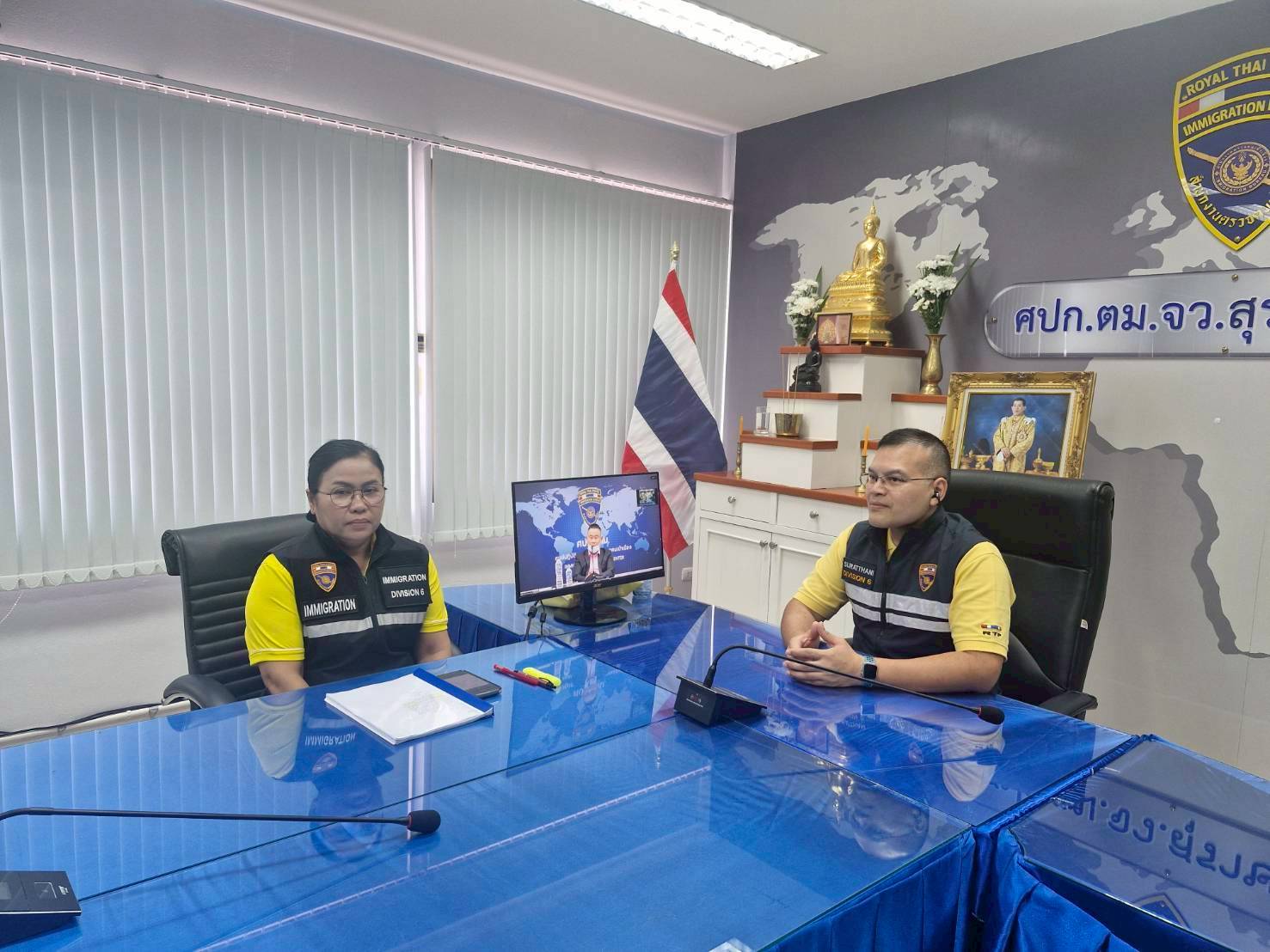วันที่ 22 ก.ค.68 เวลา 14.00 น. พ.ต.ท.พิงคะรัตน์ ซ้ายขวัญ รอง ผกก.ตม.จว.สุราษฎร์ธานี และ พ.ต.ท.หญิง ป