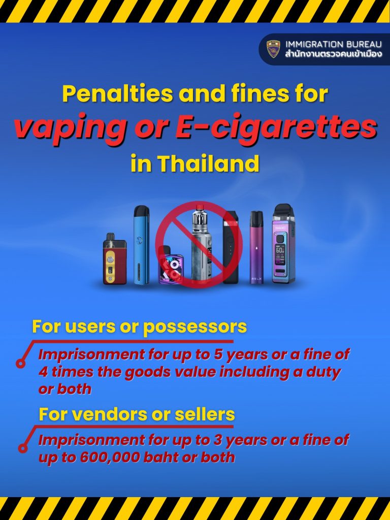 Penalties and fines for vaping or E-cigarettes in Thailand
