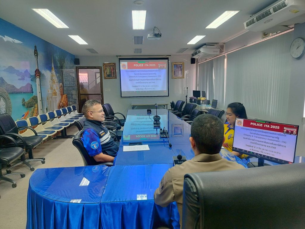 วันนี้ 27 มี.ค.68 เวลา 13.30 น. ว่าที่ พ.ต.อ.นฤวัต พุทธวิโร ผกก.ตม.จว.สุราษฎร์ธานี พร้อมด้วย พ.ต.ท.พิงคะรัตน์ ซ้ายขวัญ รอง ผกก.ตม.จว.สุราษฎร์ธานี และ พ.ต.ท.หญิง วิลาวัณย์ แก้วสมบุญ สว.ตม.จว.สุราษฎร์ธานี เข้าร่วมเฝ้าฟังการประชุมคณะทำงานการประเมินคุณธรรมและความโปร่งใสในการดำเนินงานของหน่วยงานภาครัฐ (integrity & Transparency Assessment : ITA) ของสำนักงานตำรวจแห่งชาติและระดับสถานีตำรวจ ประจำปีงบประมาณ พ.ศ.2568 ผ่านระบบการประชุมทางไกลผ่านจอภาพ ระบบ Zoom ณ ห้องประชุม ศปก.ตม.จว.สุราษฎร์ธานี