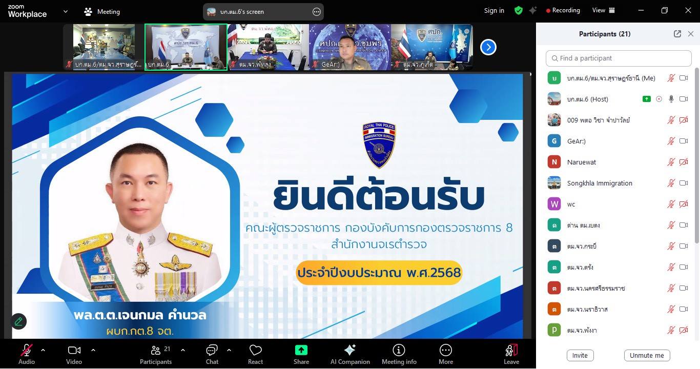 ตม.จว.สุราษฎร์ธานี เข้าร่วมประชุมผ่านระบบ Zoom เรื่อง ประชุมคณะทำงานขับเคลื่อนและติดตามแผนแม่บท (Master Plan) ที่ดินและอาคารสถานที่ ตร.ครั้งที่ ๕/๒๕๖๘