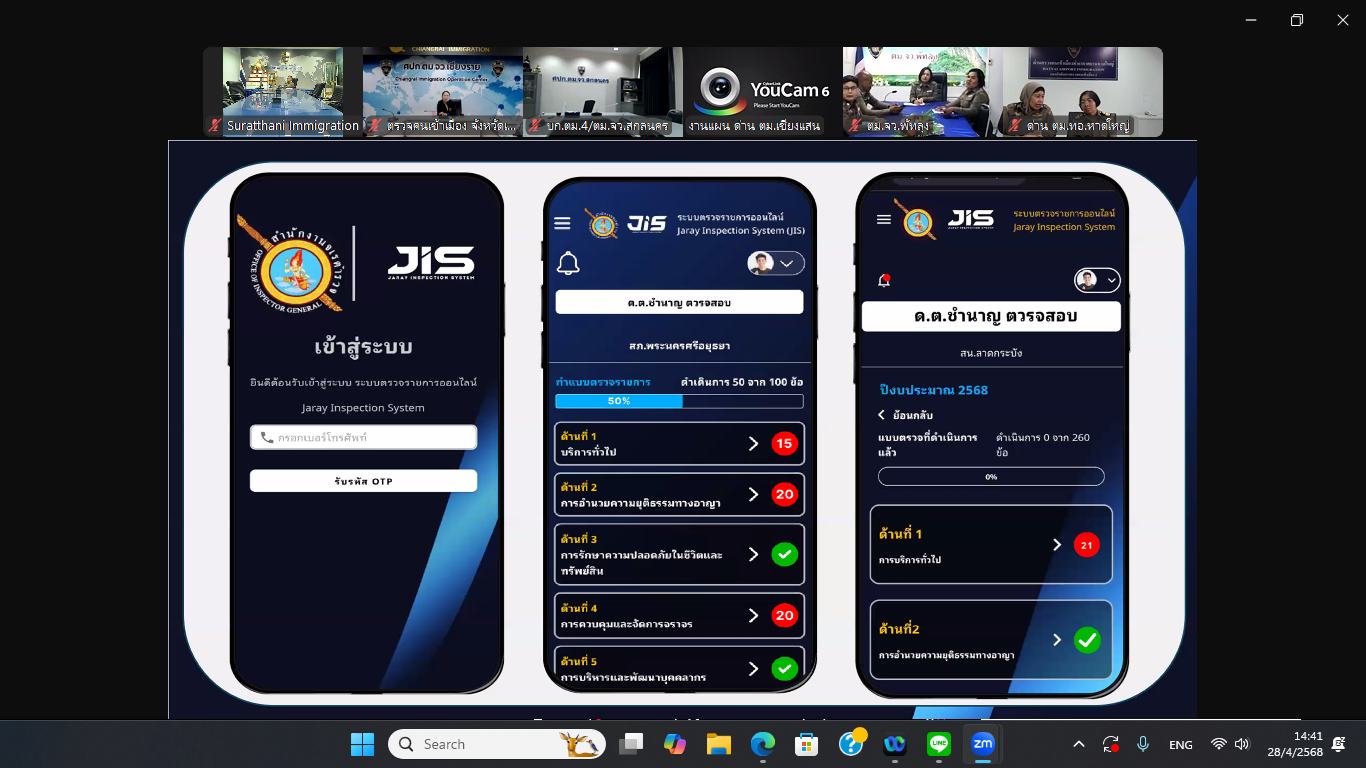 ตม.จว.สุราษฎร์ธานี เข้ารับการฝึกอบรมการใช้งานระบบตรวจราชการออนไลน์ (Jaray Inspection System : JIS)