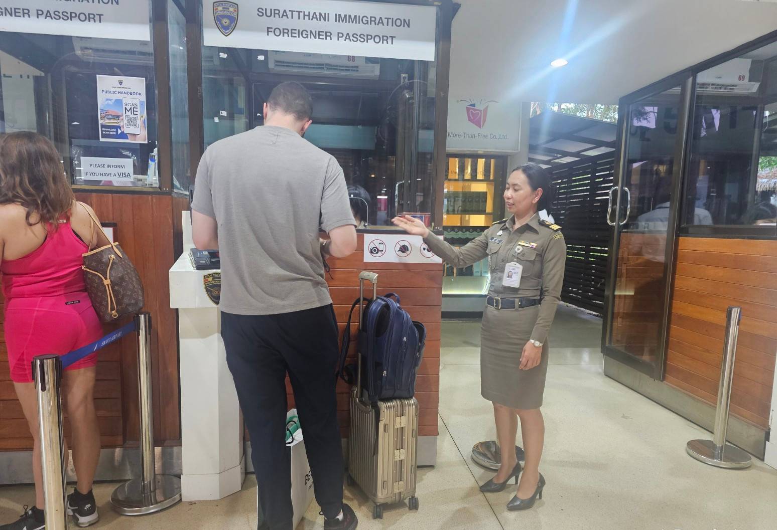 วันที่ 22 ก.พ.68 ร.ต.อ.หญิง ธมนวรรณ มณี รอง สว.ตม.จว.สุราษฎร์ธานี ,ร.ต.ท.ผดุงศักดิ์ แยบกระโทก รอง สว