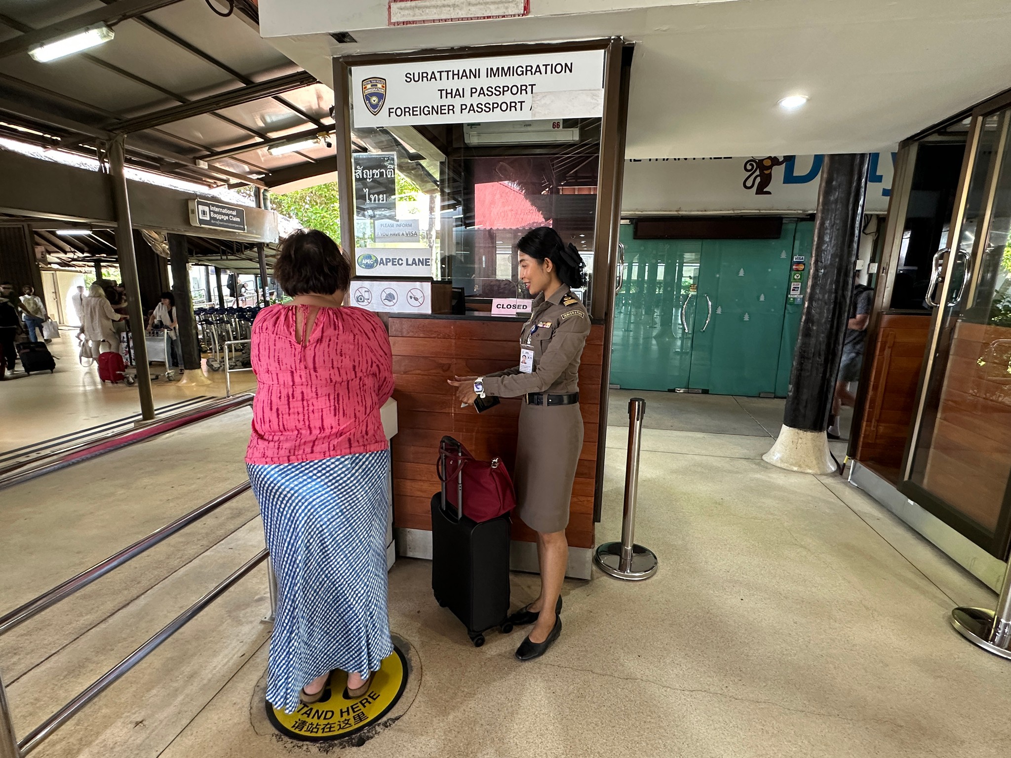วันที่ 8 ก.พ.68 ร.ต.อ.หญิง ธมนวรรณ มณี รอง สว.ตม.จว.สุราษฎร์ธานี ,ร.ต.ท.ผดุงศักดิ์ แยบกระโทก รอง สว