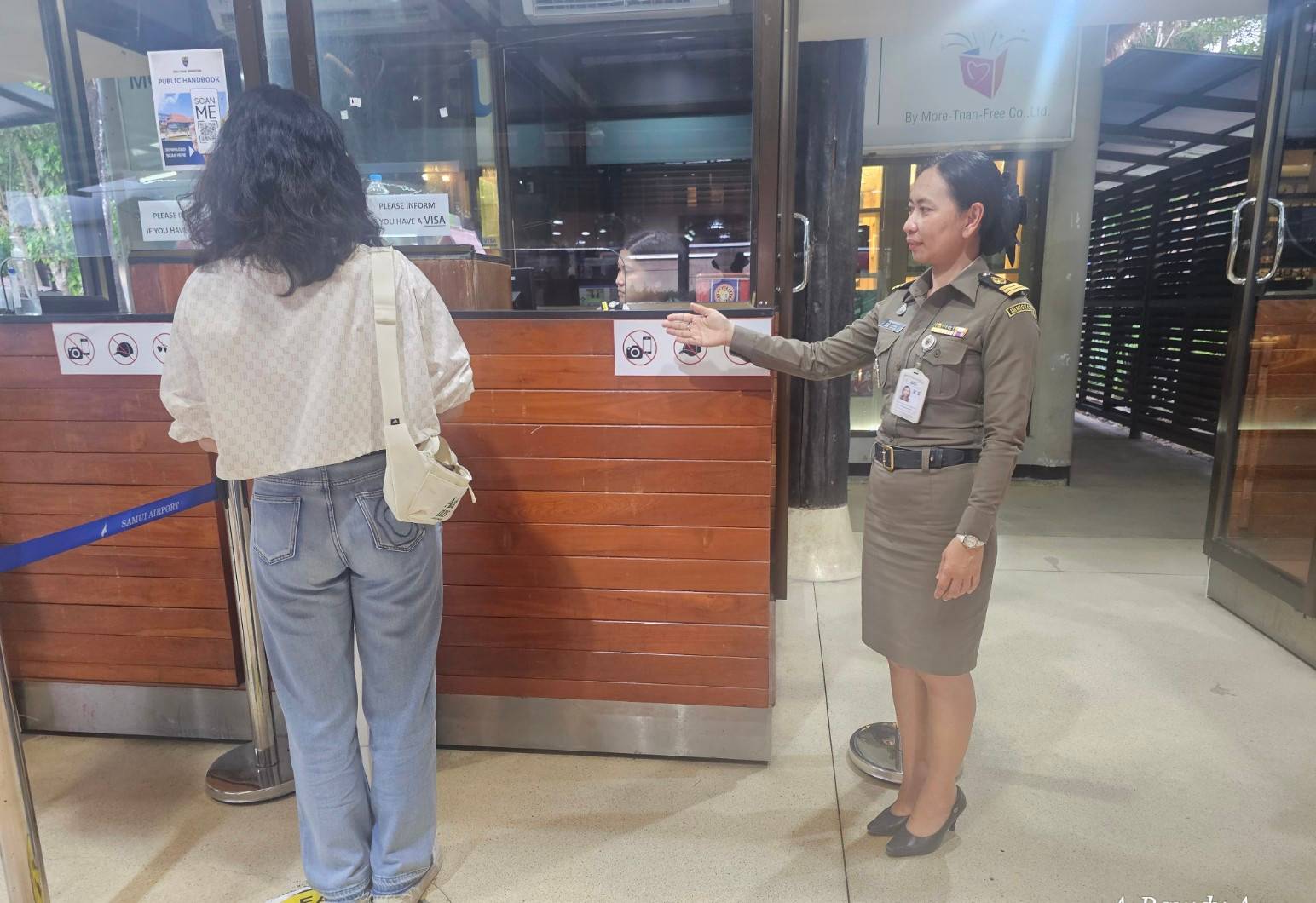 วันที่ 5 ก.พ.68 ร.ต.อ.หญิง ธมนวรรณ มณี รอง สว.ตม.จว.สุราษฎร์ธานี ,ร.ต.ท.ผดุงศักดิ์ แยบกระโทก รอง สว