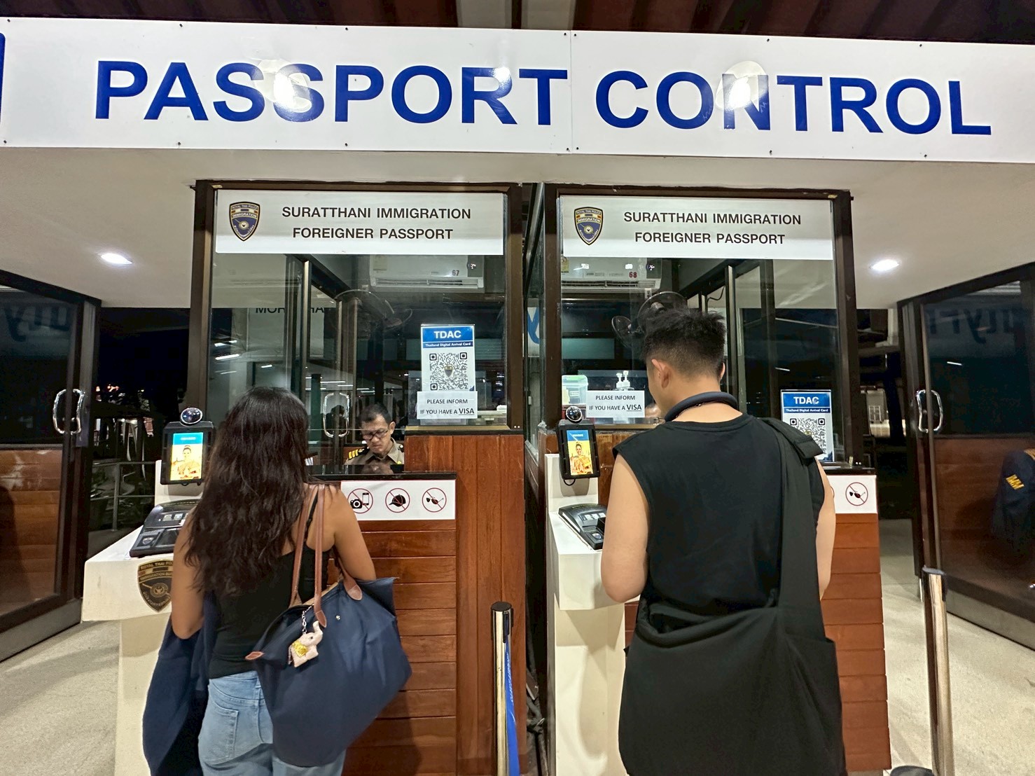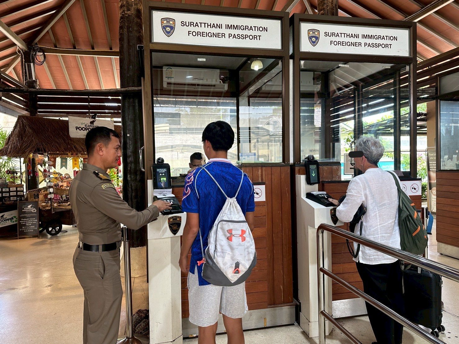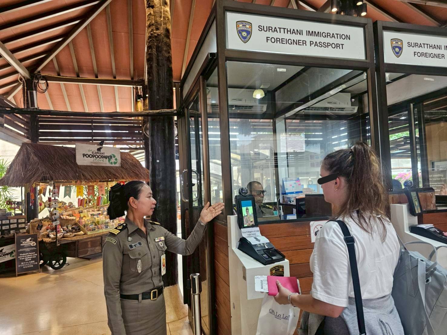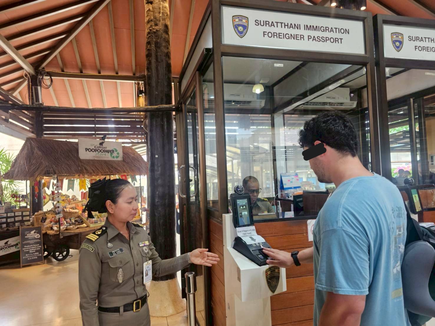 ตม.จว.สุราษฎร์ธานี (ทอ.สมุย) ปฏิบัติหน้าที่ตรวจบุคคลและพาหนะทางอากาศ