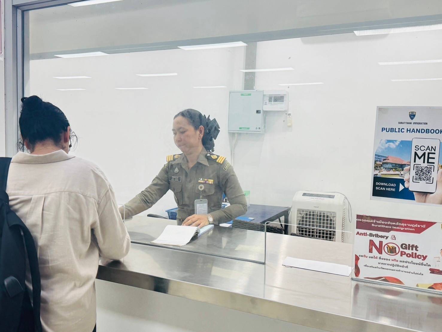 วันที่ 5 ธ.ค.67 ร.ต.อ.ปิติพงษ์ เสนชู รอง สว.ตม.จว.สุราษฎร์ธานี ,ร.ต.อ.หญิง ภาวดี หวานทอง ,ร.ต.อ.หญิง