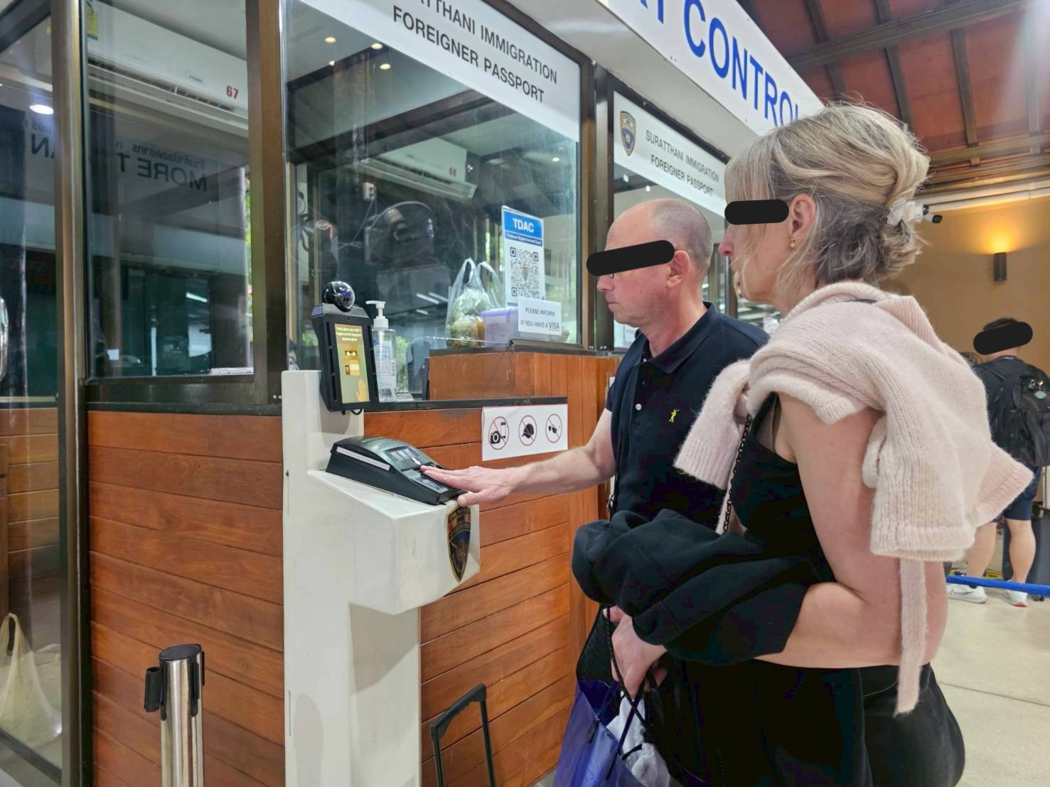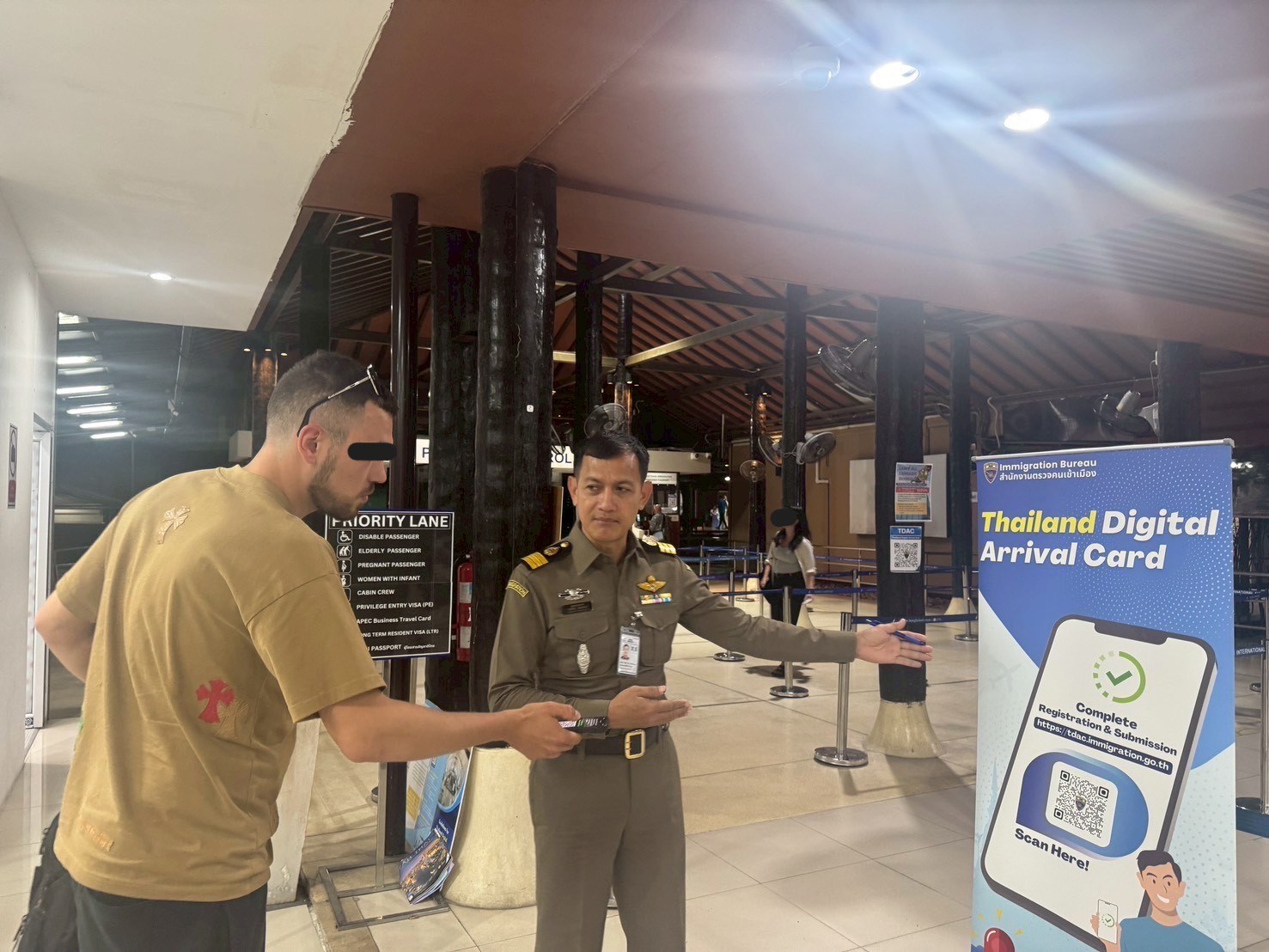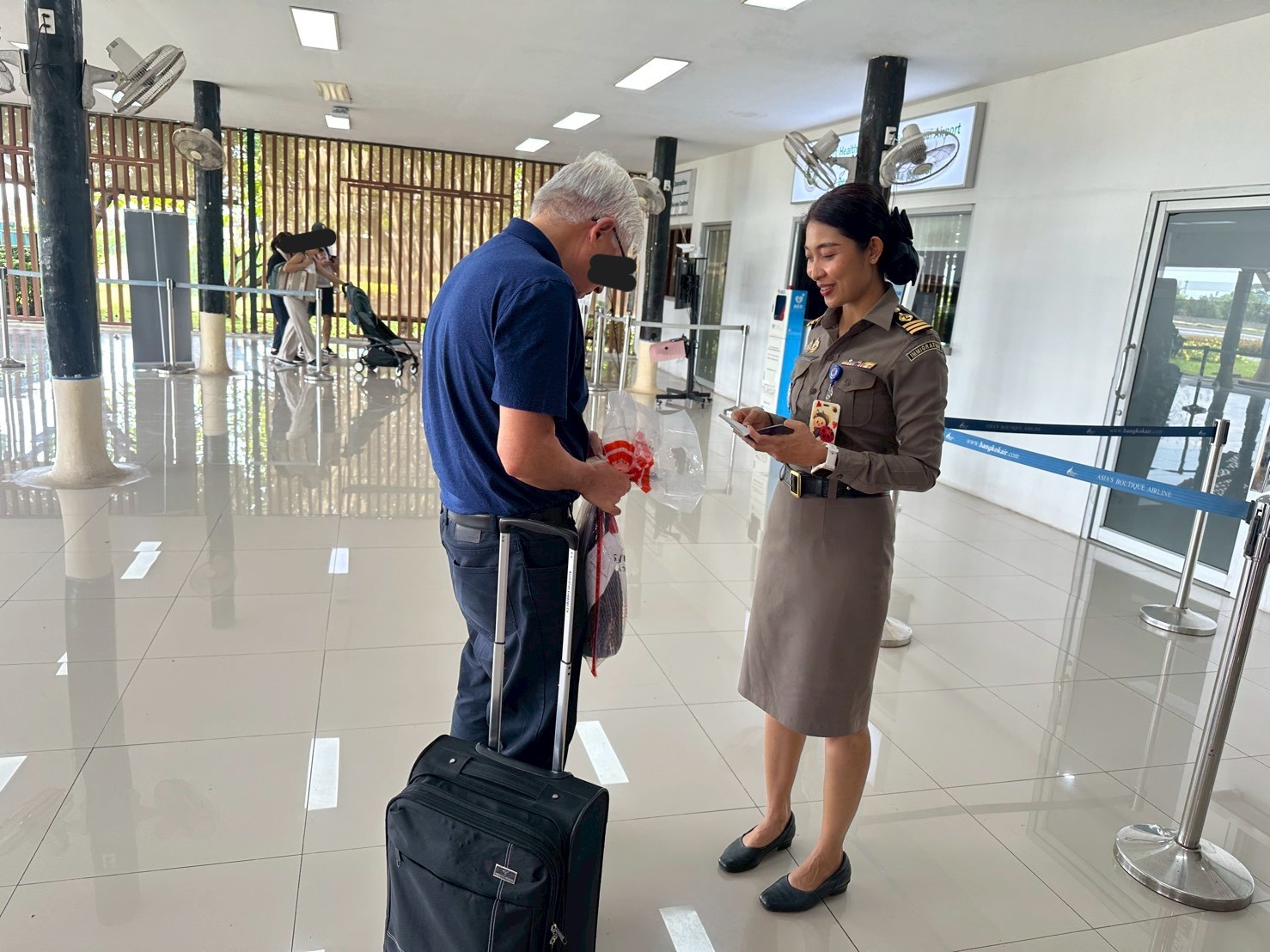 ตม.จว.สุราษฎร์ธานี (ทอ.สมุย) ปฏิบัติหน้าที่ตรวจบุคคลและพาหนะทางอากาศ