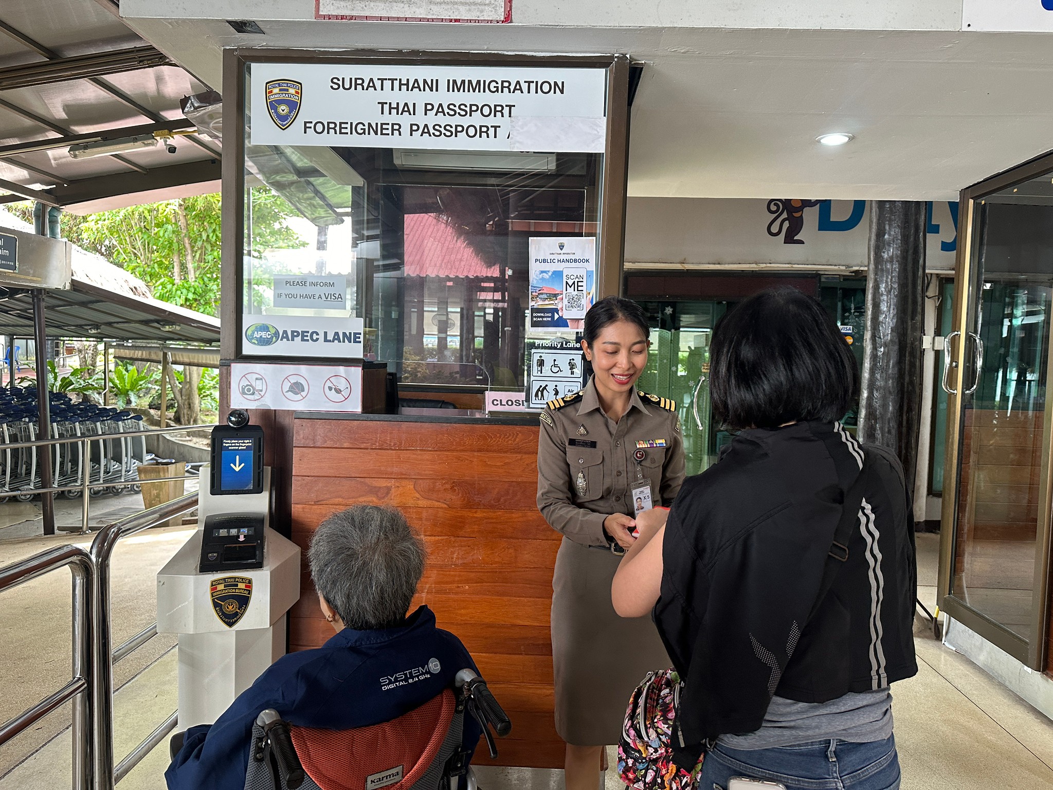 ตม.จว.สุราษฎร์ธานี ตรวจสอบ คัดกรองบุคคลเดินทางเข้า – ออกราชอาณาจักร ด้วยความละเอียดรอบคอบ เป็นไปตามคำสั่ง ระเบียบ กฎหมายที่เกี่ยวข้อง ประจำสนามบินสมุย