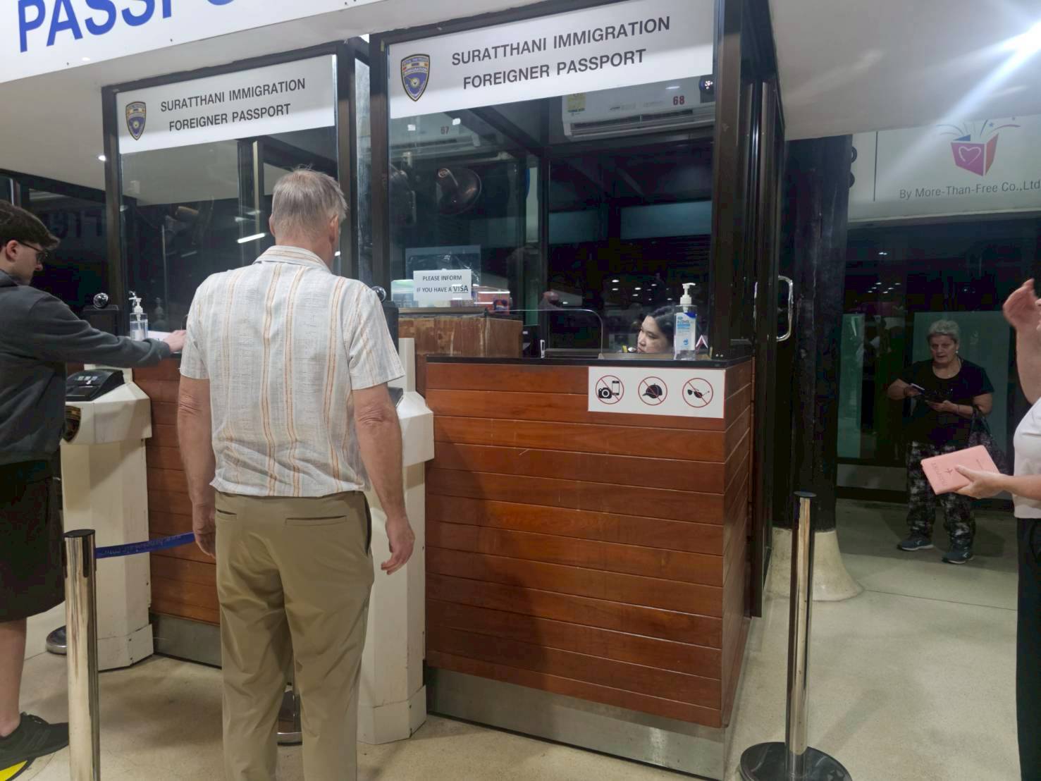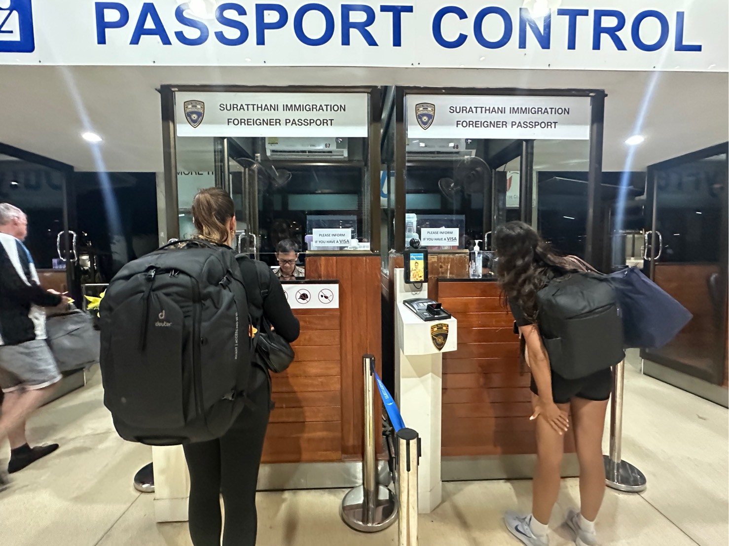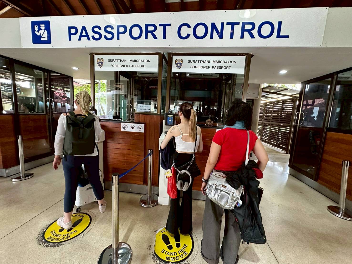 ตรวจบุุคคลและพาหนะทางอากาศ, Overstay, Visa on arrival พร้อมดูแล ช่วยเหลือ อำนวยความสะดวกและความเรียบร้อยในแถวระหว่างรอเข้าใช้บริการให้กับผู้โดยสารที่เดินทางเข้า-ออก ทางอากาศในเขตพื้นที่รับผิดชอบประจำสนามบินสมุย