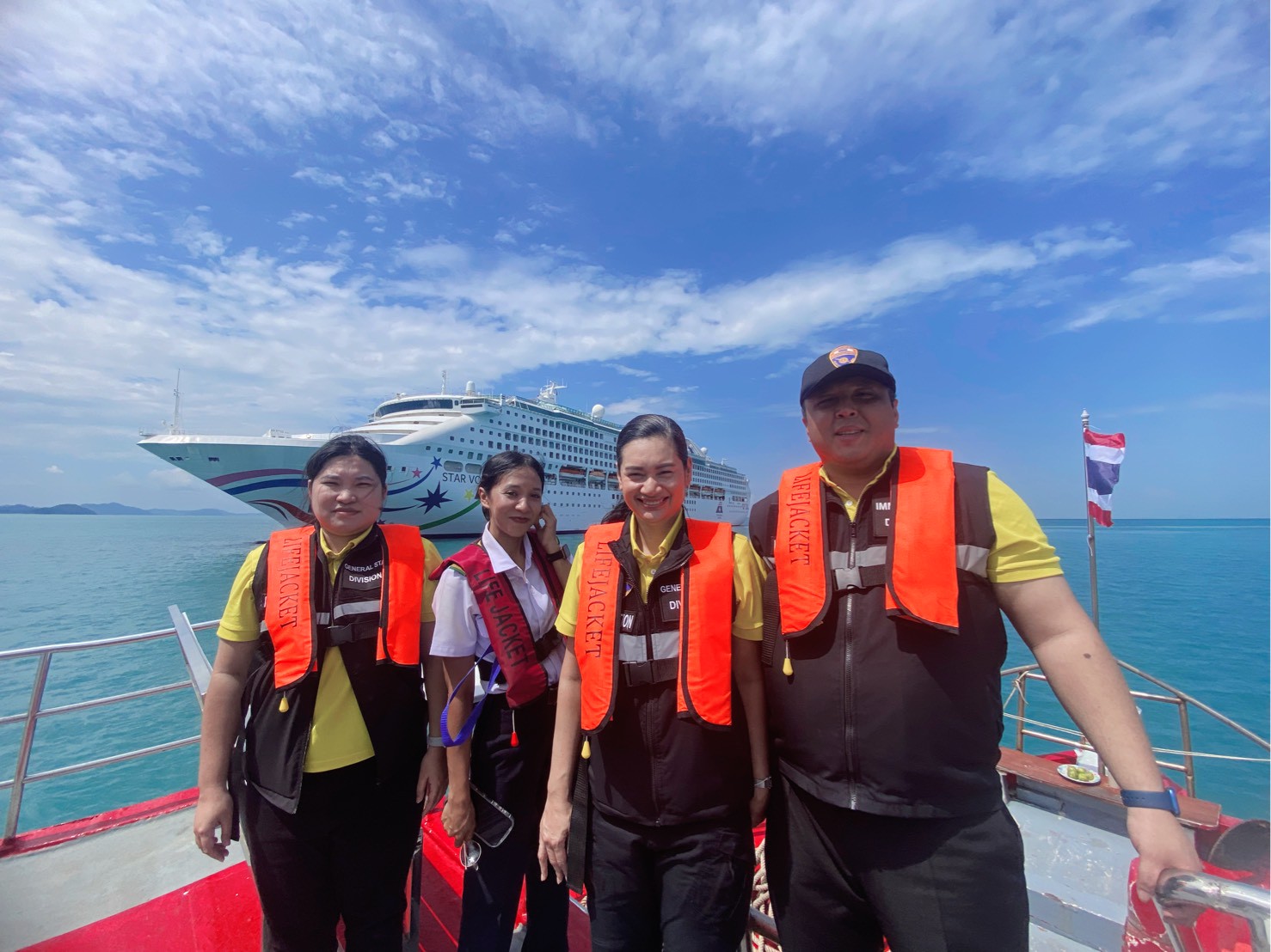 ตม.จว.สุราษฎร์ธานี ปฏิบัติหน้าที่ตรวจเรือสำราญ “m.v. STAR VOYAGER” ที่เดินทางมาจากแหลมฉบัง จว.ชลบุรี เพื่อนำนักท่องเที่ยวมาพักผ่อนในพื้นที่เกาะสมุย