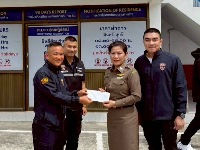วันที่ 26 มิ.ย.68 เวลา 16.00 น. พ.ต.ท.หญิง สงวนทรัพย์ ลาภสนอง สว.ตม.จว.สุราษฎร์ธานี, พร้อมเจ้าหน้าที