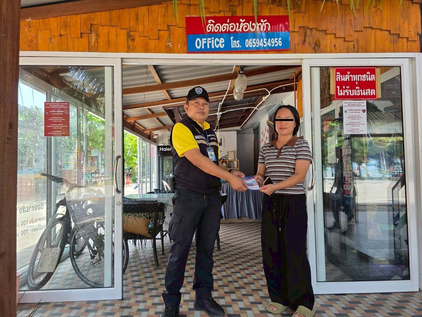 วันที่ 22 ต.ค.68 เวลา 13.00 น. ร.ต.ต.อรุณ พรหมทองรอง สว.(อก.) ตม.จว.สุราษฎร์ธานี พร้อมเจ้าหน้าที่ชุด