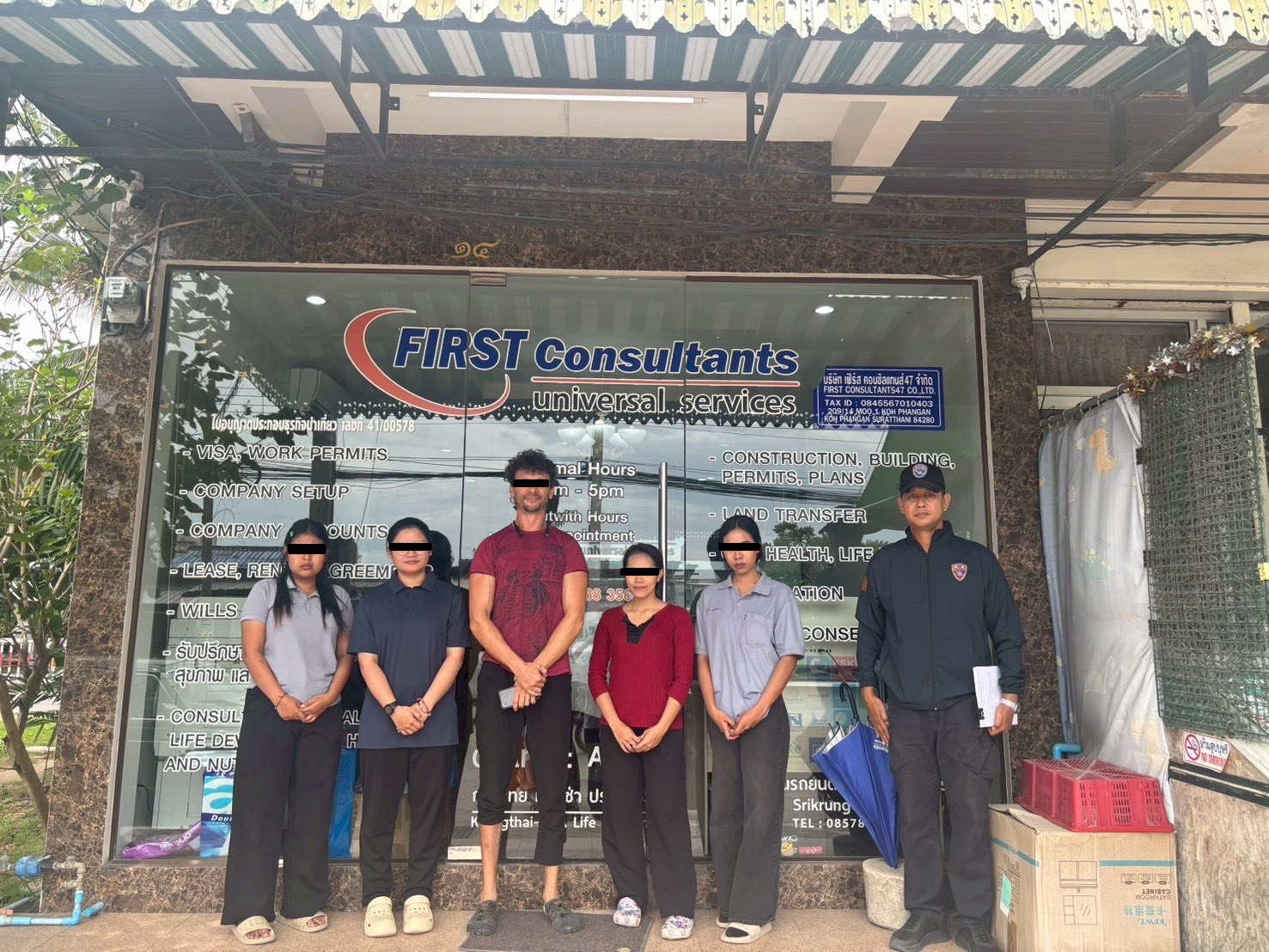 ร่วมกันจับกุมบุคคลสัญชาติ เมียนมาโดยกล่าวหาว่า “เป็นบุคคลต่างด้าวทำงานนอกเหนือจากที่มีสิทธิ์จะทำได้” (เสมียนพนักงาน)