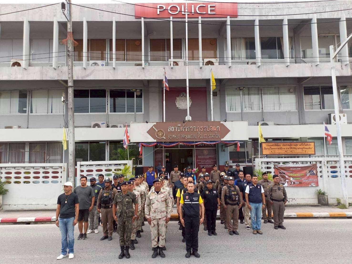 เจ้าหน้าที่ตำรวจท่องเที่ยว ส.ทท.5 กก.2 บก.ทท.3,เจ้าหน้าที่ตำรวจภูธร สภ.บ่อผุด,เจ้าหน้าที่ตำรวจ กก.สส.ภ.8,เจ้าหน้าที่ทหาร ชุด กอ.รมน.ภาค 4 (พื้นที่อำเภอเกาะสมุย) ,เจ้าหน้าที่ฝ่ายปกครอง อำเภอเกาะสมุย ร่วมปล่อยแถวระดมกวาดล้างอาชญากรรมก่อนการเลือกตั้งสมาชิกสภาองค์การบริหารส่วนจังหวัดและนายกองค์การบริหารส่วนจังหวัด