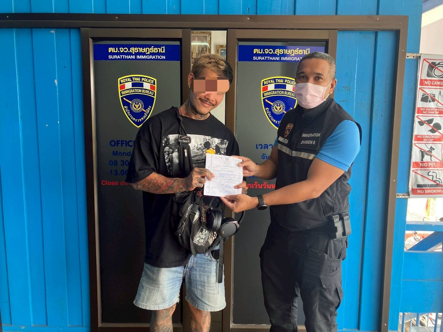 วันที่ 23 ม.ค.2568 เวลา 16.40 น. พ.ต.ท.วัสส์ธนภูมิ กุลจิตติชุติพร รอง ผกก.ตม.จว.สุราษฎร์ธานี, พ.ต.ต.