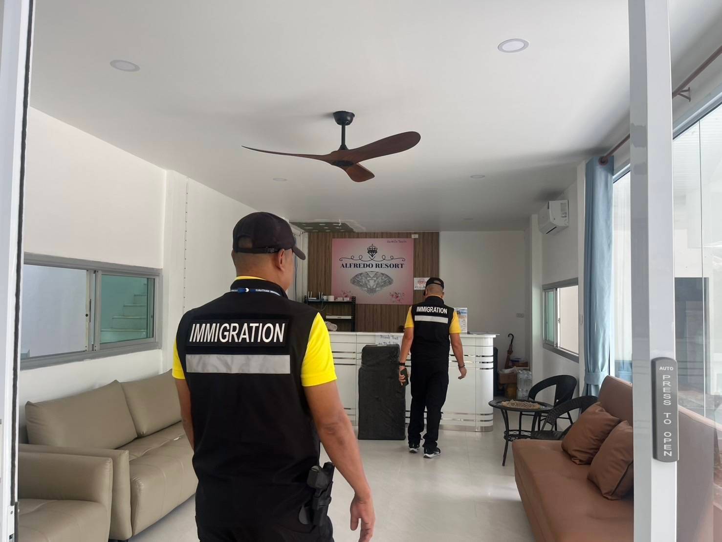 ตม.จว.สุราษฎร์ธานี นำโดย ร.ต.ท.ภรภัทร เมืองชู รอง สว.(สส.)ตม.จว.สุราษฎร์ธานี พร้อมเจ้าหน้าที่ชุดสืบสวน ชป.5 (เกาะเต่า) ออกตรวจสอบการแจ้งที่พักอาศัยคนต่างด้าว ตาม ม.38 แห่ง พ.ร.บ.คนเข้าเมือง พ.ศ.2522