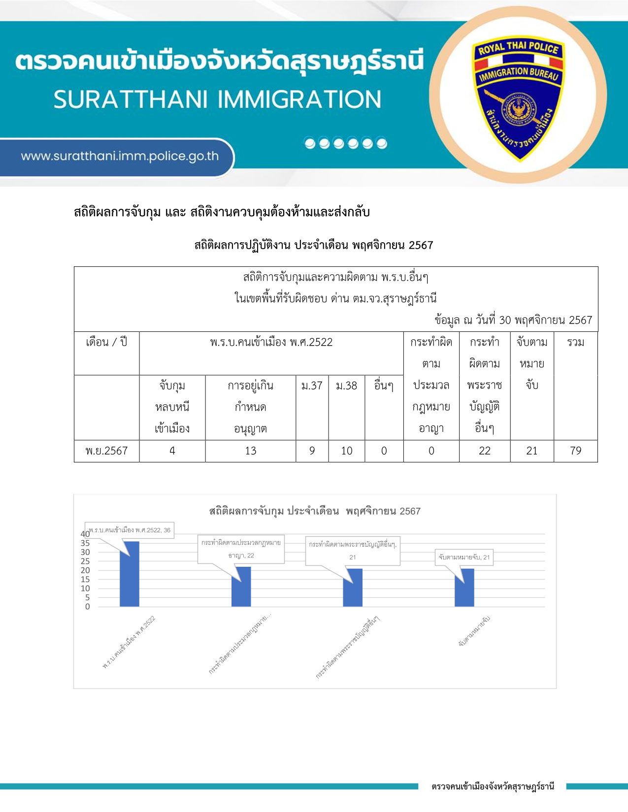 สถิติผลการจับกุม และ สถิติงานควบคุมต้องห้ามและส่งกลับ ประจำเดือน พฤศจิกายน 2567
