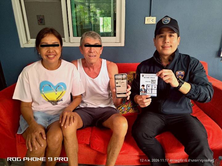 วันที่ 19 ก.พ.69 เวลา 11.00 น. ร.ต.ท.อรุณ พรหมทอง รอง สว.ตม.จว.สุราษฎร์ธานี พร้อมเจ้าหน้าที่ชุดสืบสว